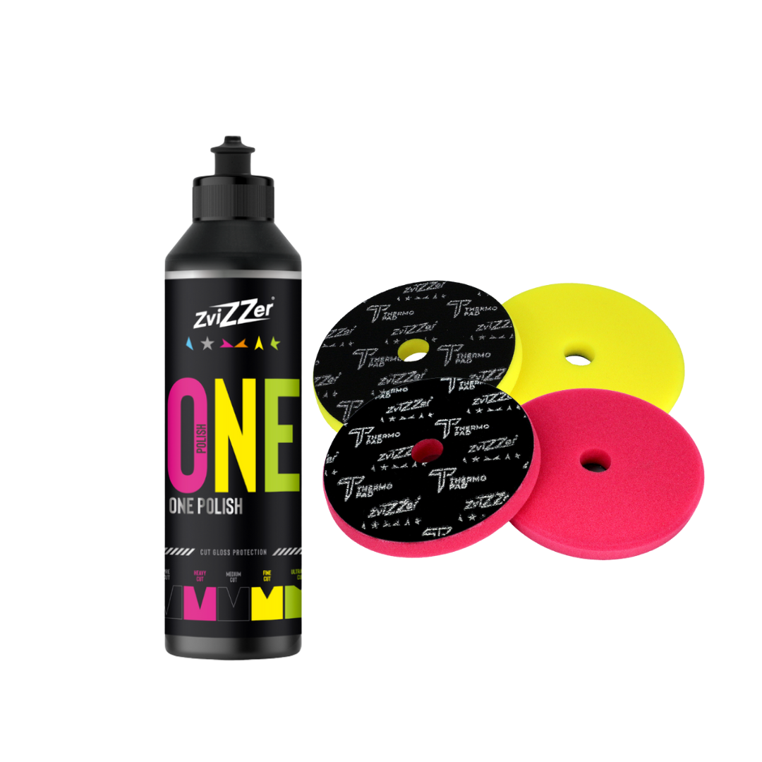 Hvis du ikke ønsker og polere bilen i flere trin, så er ZviZZer ONE setuppet lige noget for dig. Her får du en polermiddel som både giver cut effekt til dybe og små ridser, giver maksimal glans i lakken og forsegler den med polymere! Super effektivt til lakken som kræver en dybere polering, eller bare lige skal friskes op igen alt afhænger blot af hvilken polerskive du anvender.