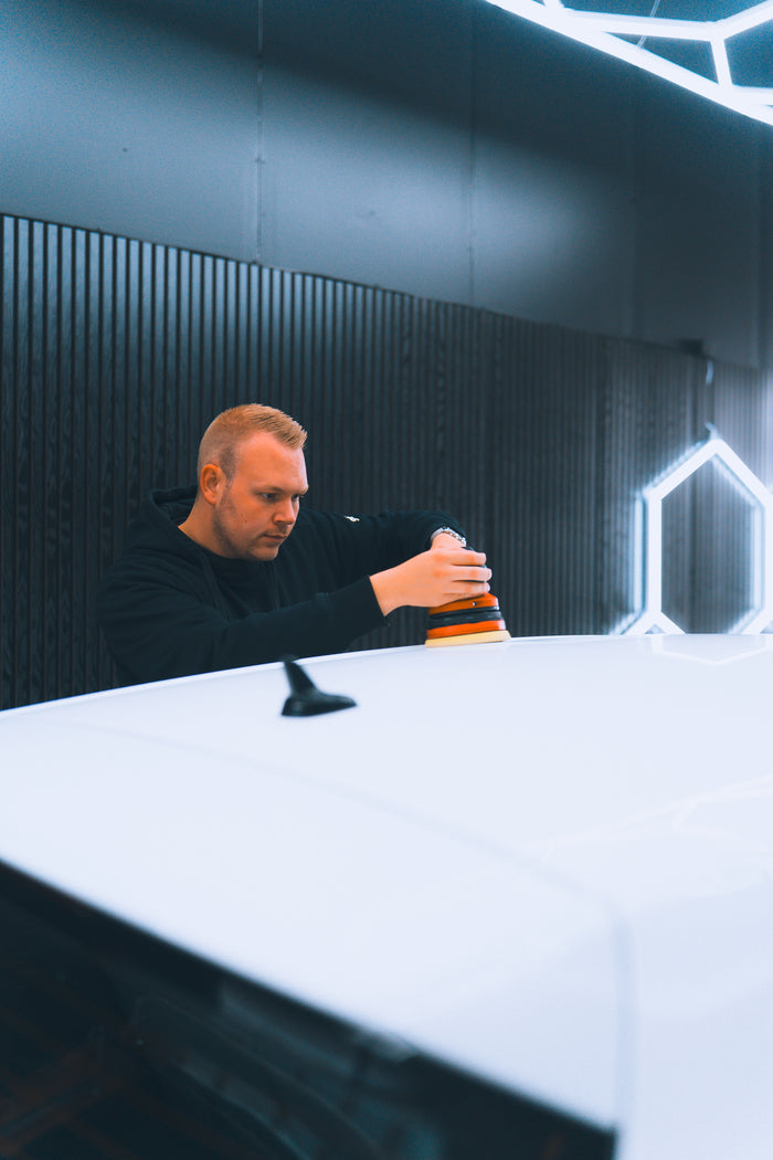 - 3-trins polering til biler med ridser eller mat lak, hvor vi genskaber et næsten fabriksnyt udtryk.